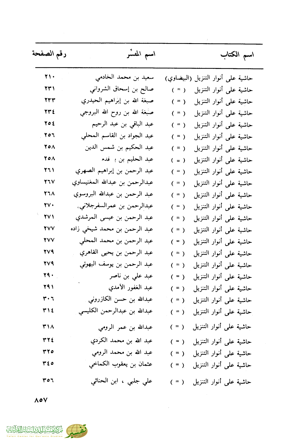 حاشية على أنوار التنزل (البيضاوي) … سعيد بن محمد الخادمي … 210