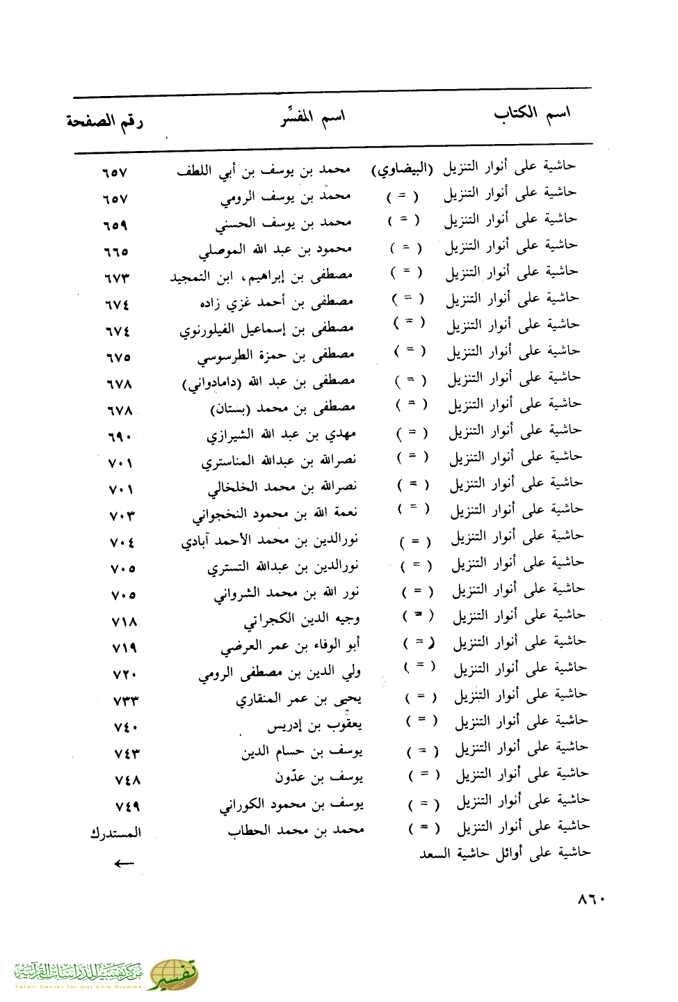 حاشية على أنوار التنزيل (=) … مصطفى بن حمزة الطرسوسي … 675