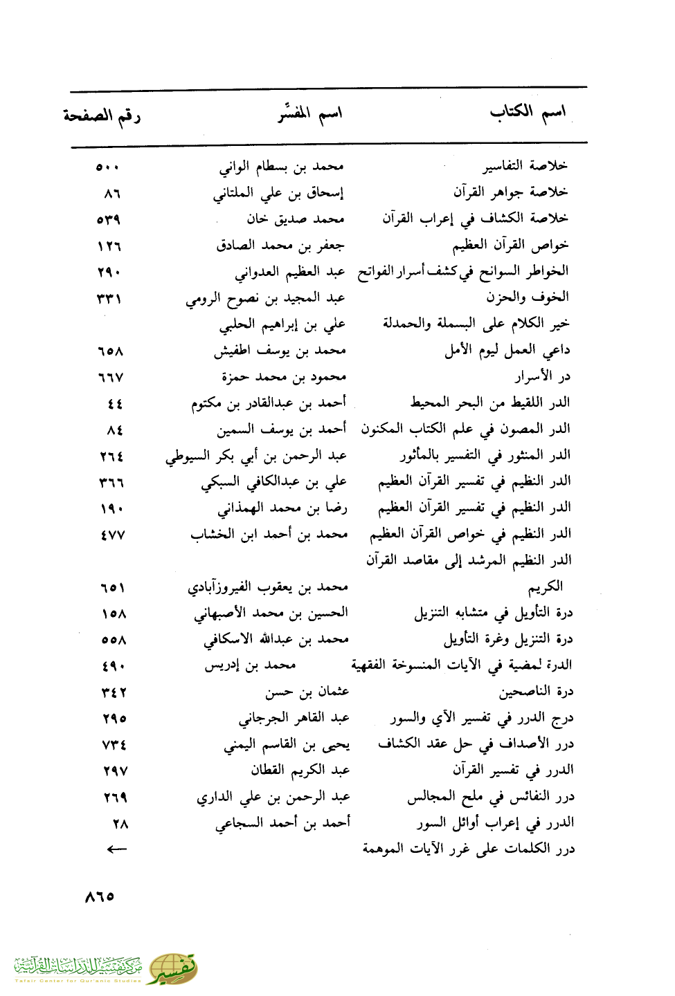 اسم الكتاب … اسم المفسر … رقم الصفحة