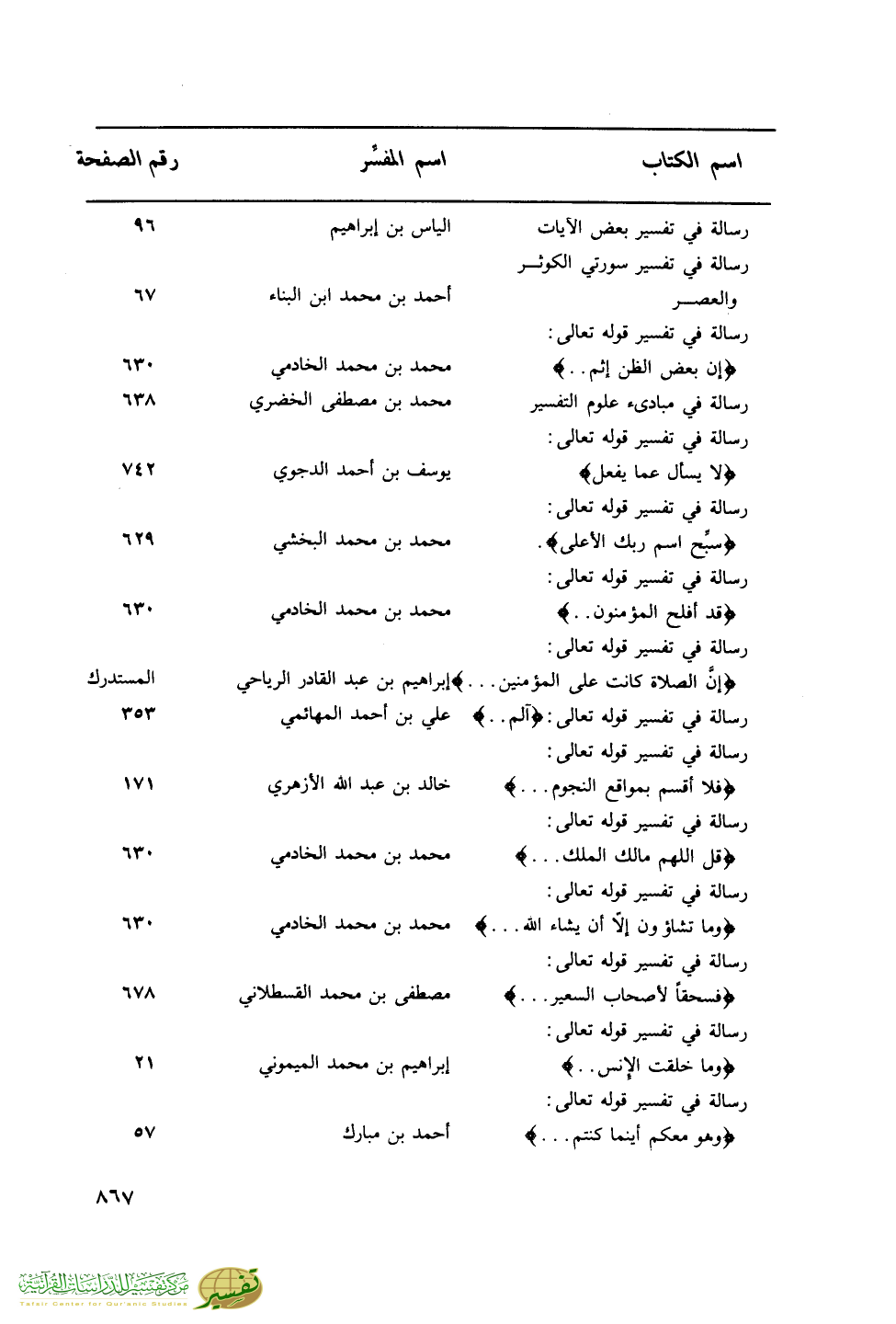 اسم الكتاب … اسم المفسر … رقم الصفحة