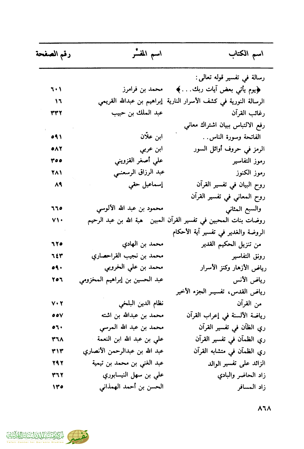 اسم الكتاب … اسم المفسر … رقم الصفحة