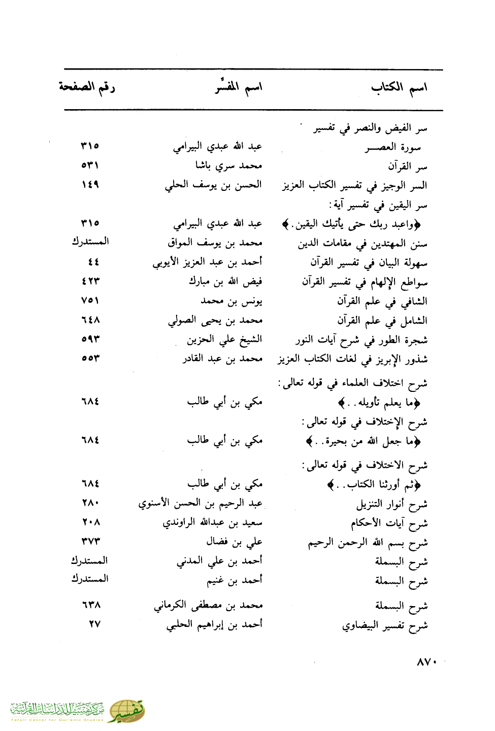 اسم الكتاب … اسم المفسر … رقم الصفحة