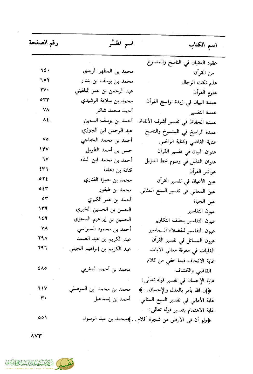 اسم الكتاب … اسم المفسر … رقم الصفحة