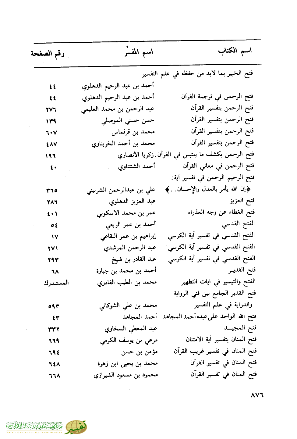 اسم الكتاب … اسم المفسر … رقم الصفحة