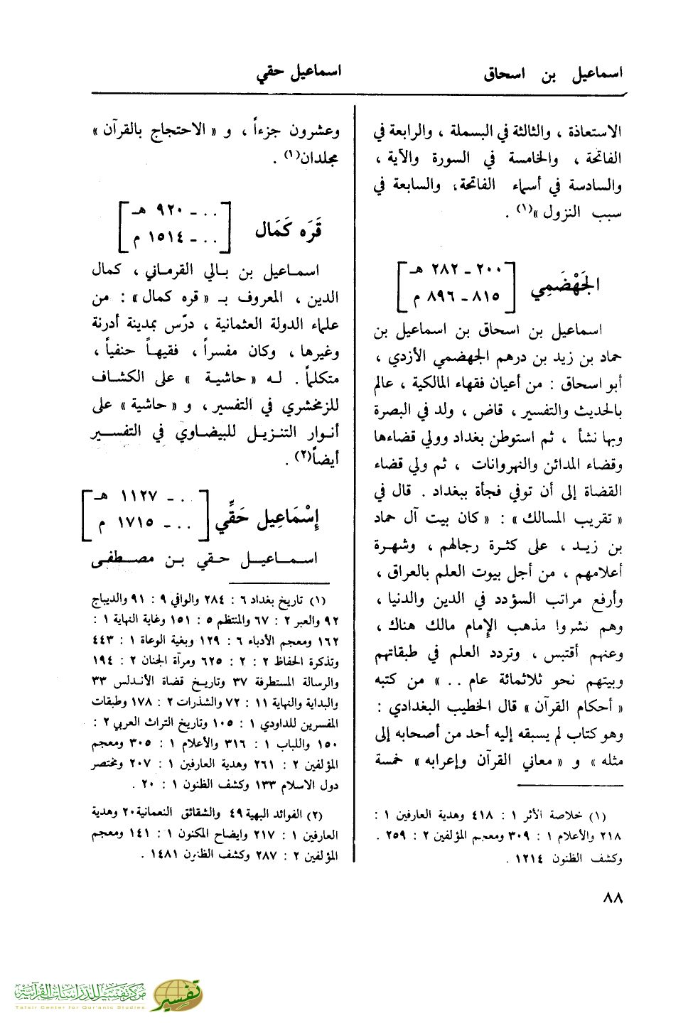 (¬2) الفوائد البهية 49 والشقائق النعمانية 25 وهدية العارفين 1: 217 وإيضاح المكنون 1: 141 ومعجم المؤلفين 2: 287 وكشف الطنون 1481.