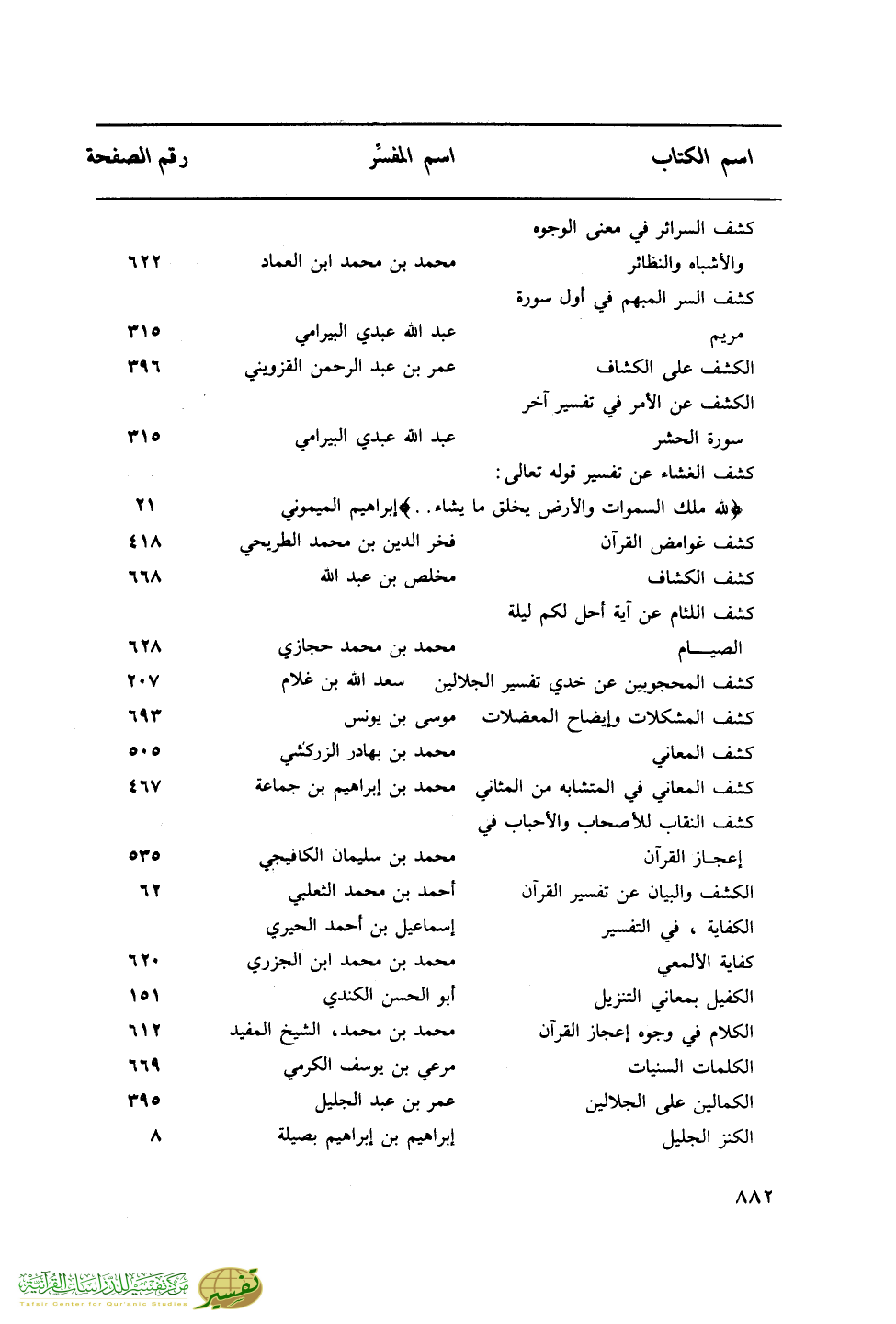 اسم الكتاب … اسم المفسر … رقم الصفحة