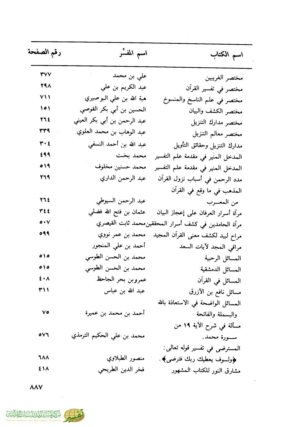 اسم الكتاب … اسم المفسر … رقم الصفحة
