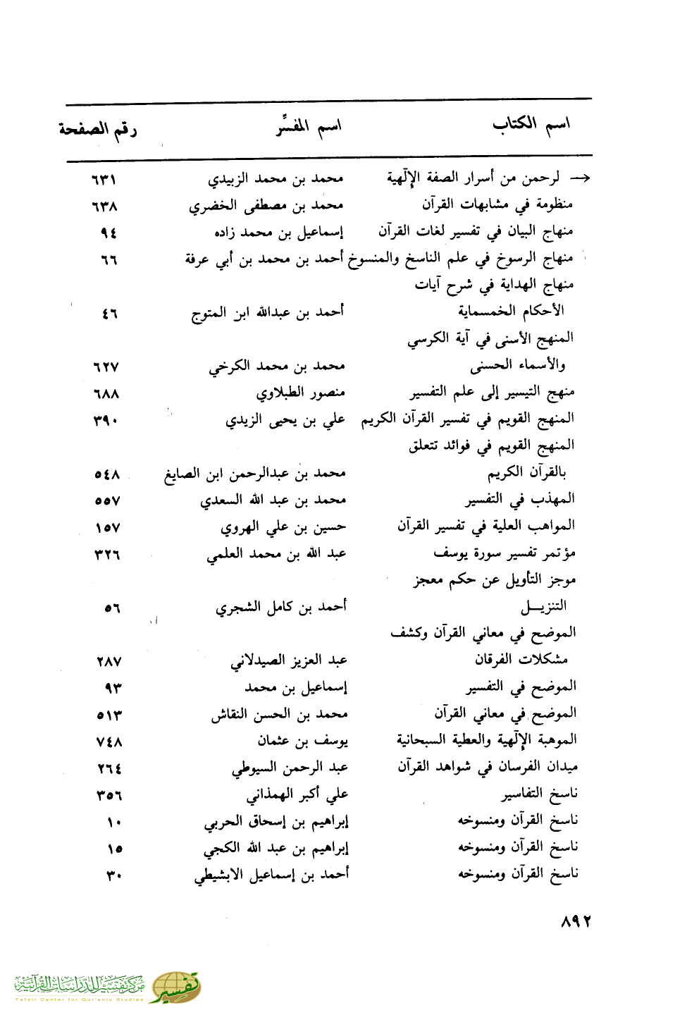 اسم الكتاب … اسم المفسر … رقم الصفحة