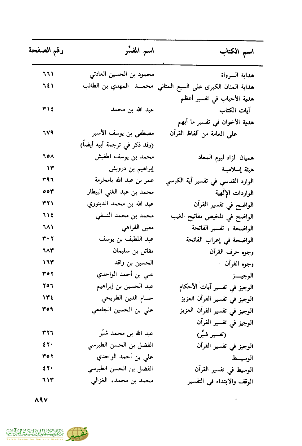 اسم الكتاب … اسم المفسر … رقم الصفحة
