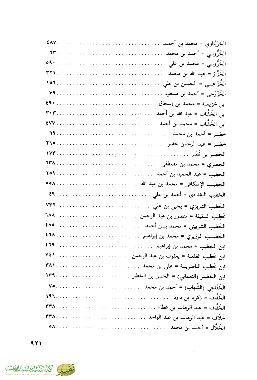 الخطيب الشربينى = محمد بن أحمد ......................... 485