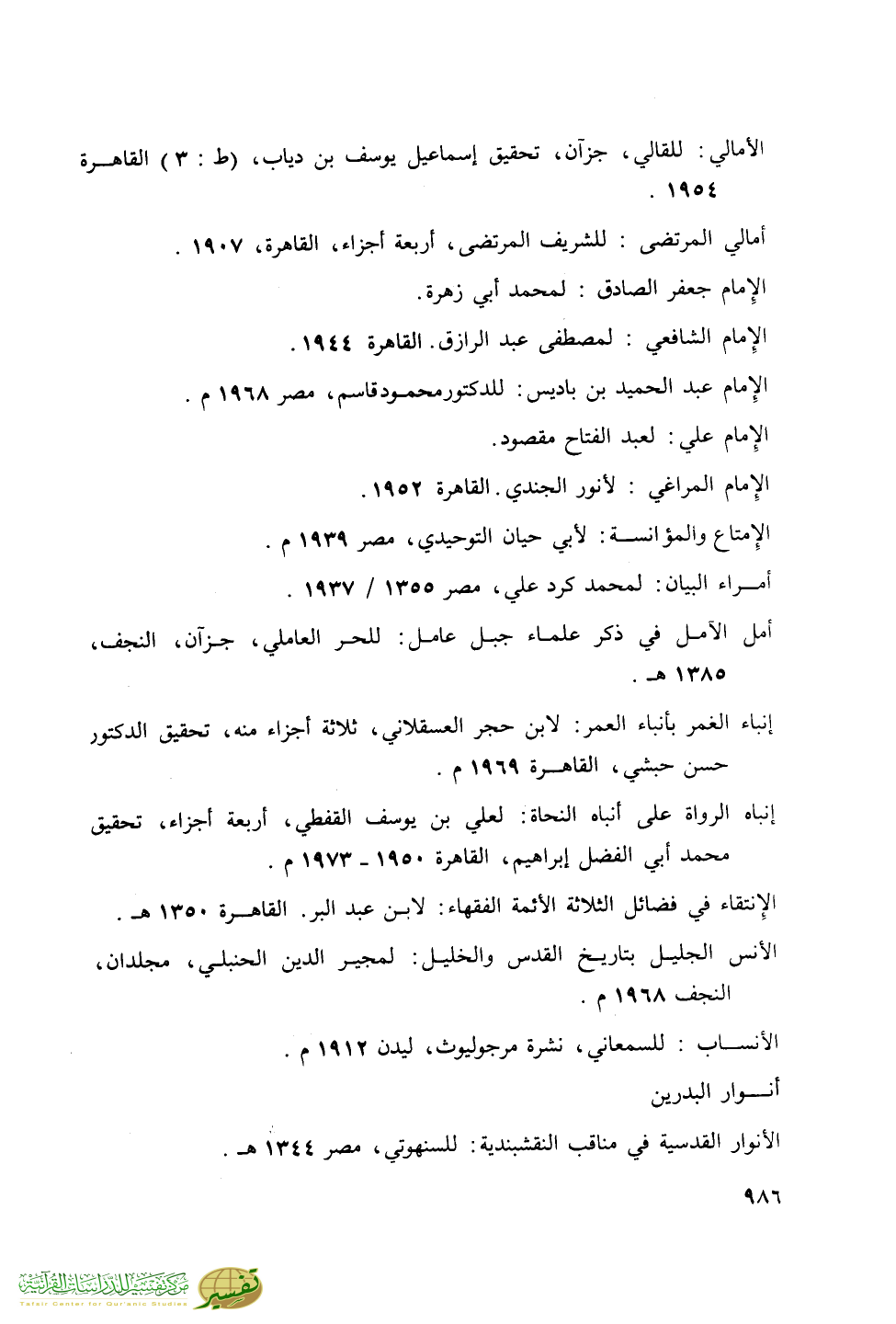 الإنقاء في فضائل الثلاثة الأئمة الفقهاء: لابن عبد البر. القاهرة 1350 هـ.