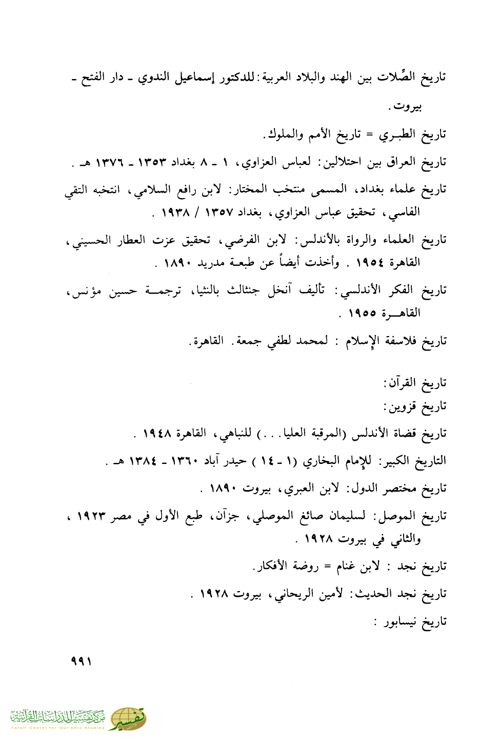 تاريخ فلاسفة الإسلام: لمحمد لطفي جمعة. القاهرة. تاريخ القرآن: