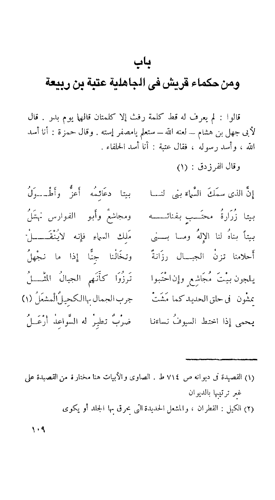 باب ومن حكماء قريش في الجاهلية عتبة بن ربيعة