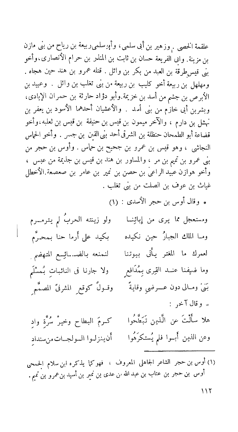 وقال أوس بن حجر الأسدي: