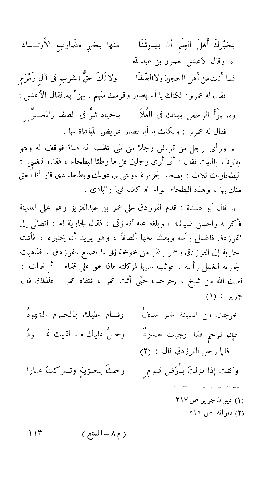 فقال له عمرو: لكنك يا أبا بصير وقومك منهم. يهزأ به. فقال الأعشى: