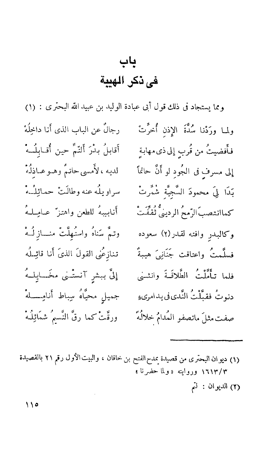 ومما يستجاد في ذلك قول أبي عبادة الوليد بن عبيد الله البحتري: