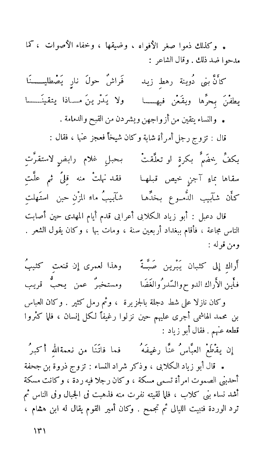 قال دعبل: أبو زياد الكلابي أعرابي قدم أيام المهدي حين أصابت الناس مجاعة، فأقام