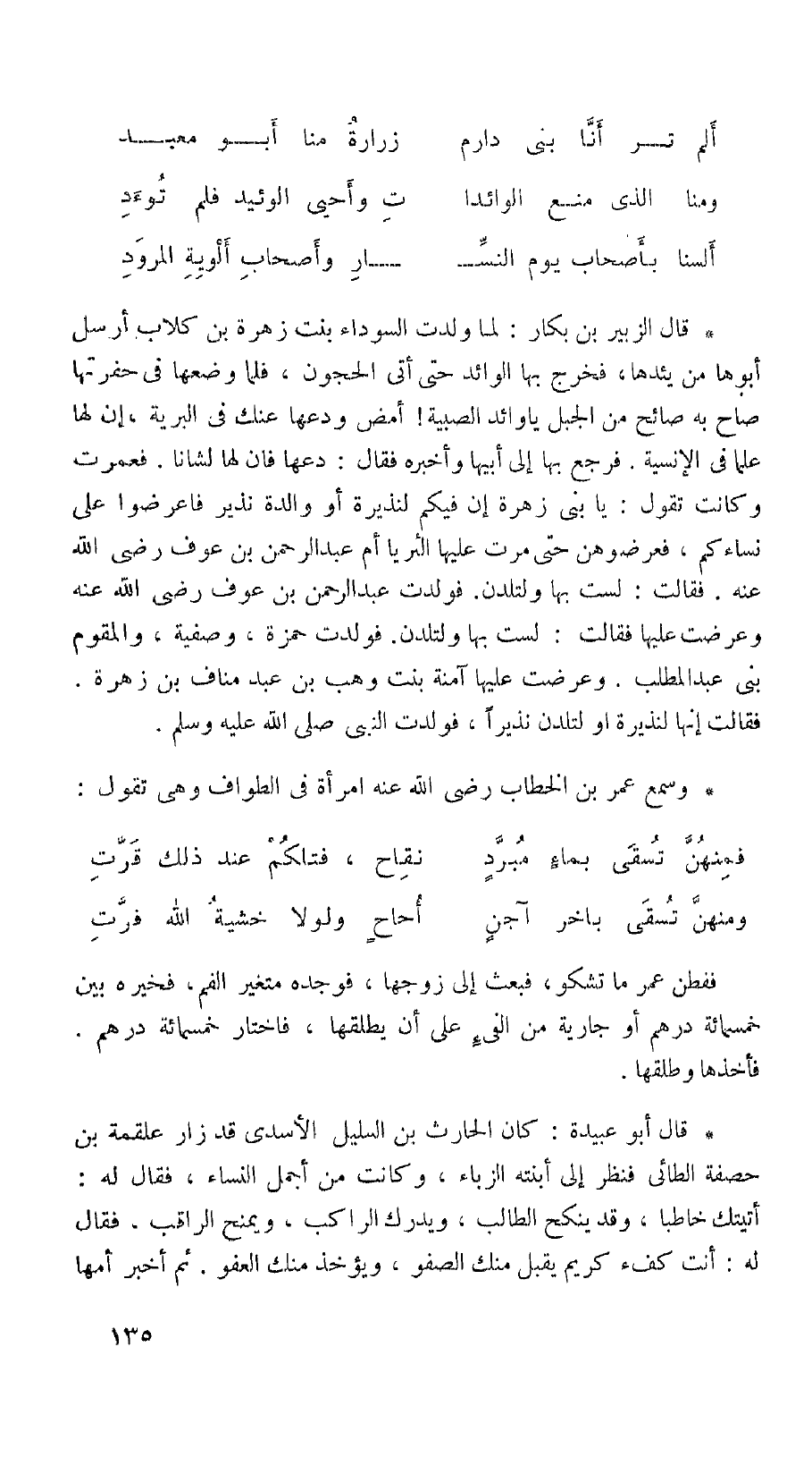 قال الزبير بن بكار: لما ولدت السوداء بنت زهرة بن كلاب أرسل أبوها من يئدها، فخرج بها الوائد حتى أتى الحجون، فلما وضعها في حفرتها صاح به صائح من الجبل يا وائد الصبية! أمض ودعها عنك في البرية، إن لها علما في الإنسانية. فرجع بها إلى أبيها