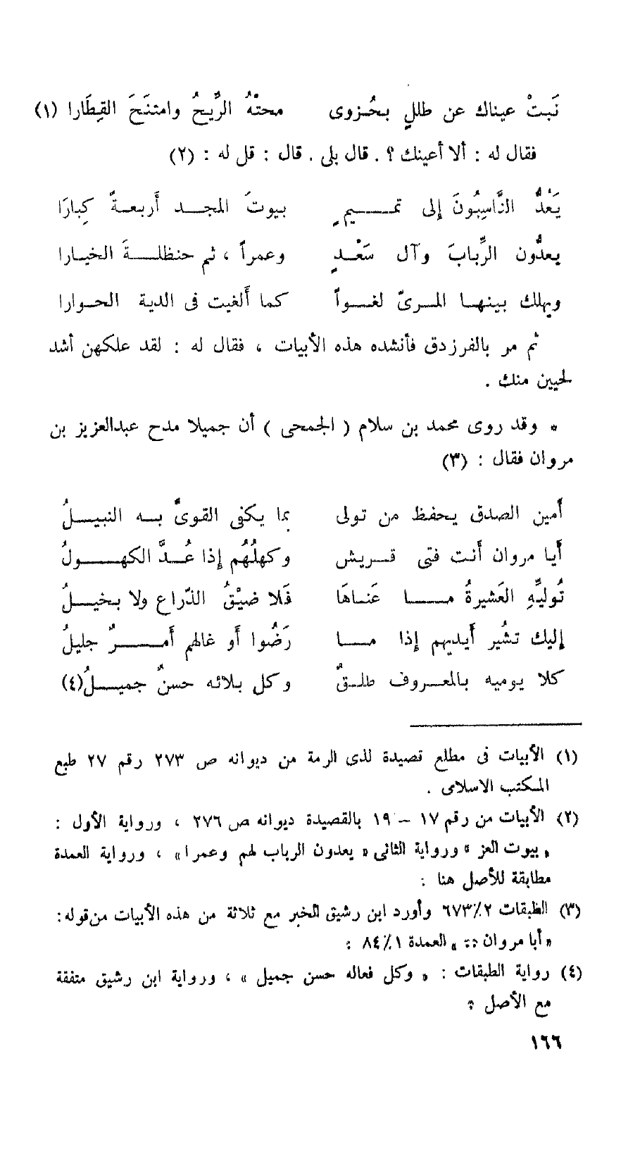 وقد روى محمد بن سلام (الجمحي) أن جميلا مدح عبد العزيز بن مروان فقال: