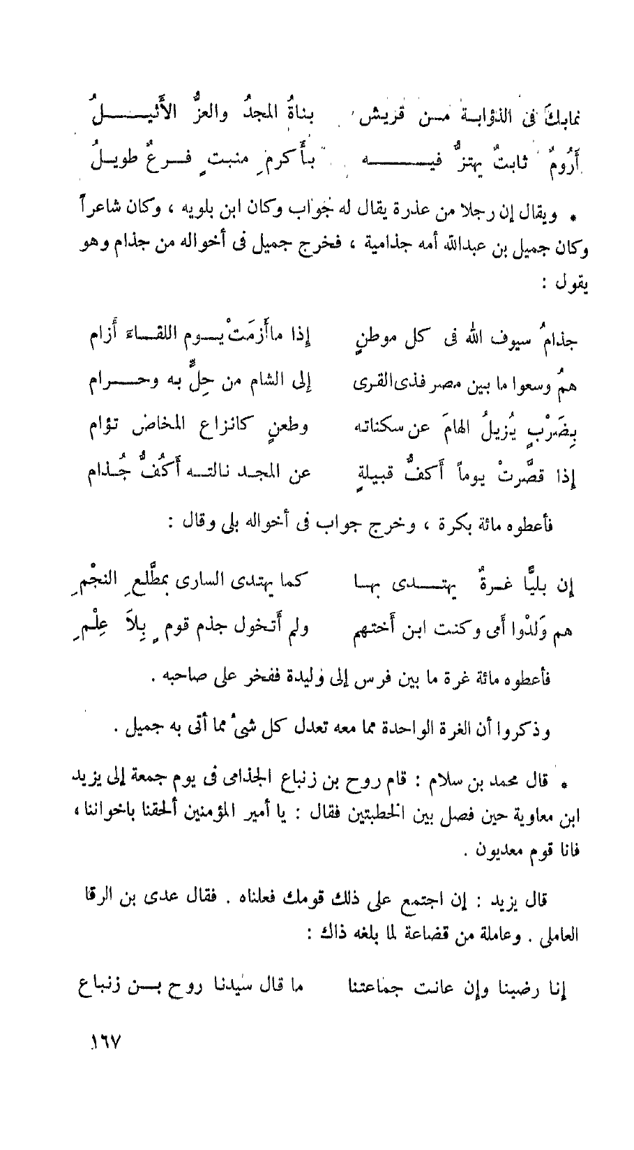 ويقال إن رجلا من عذرة يقال له جواب وكان ابن بلويه، وكان شاعراً وكان جميل بن عبد الله أمه جذامية، فخرج جميل في أخواله من جذام وهو يقول: