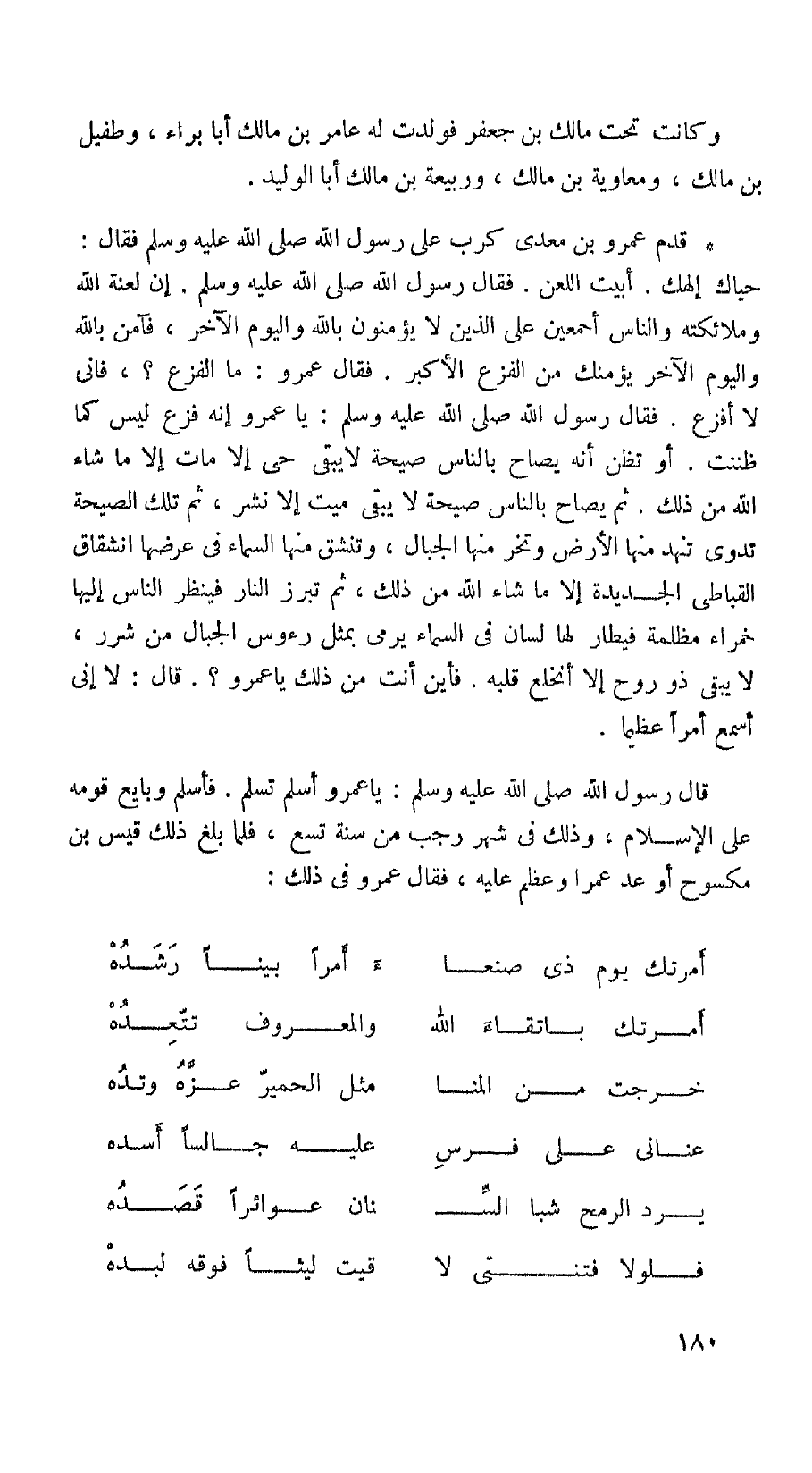 قال رسول الله (صلى الله عليه وسلم): يا عمرو أسلم تسلم. فأسلم وبايع قومه على الإسلام، وذلك في شهر رجب من سنة تسع، فما بلغ ذلك قيس بن مكشوح أوعد عمرا وعظم عليه، فقال عمرو في ذلك: