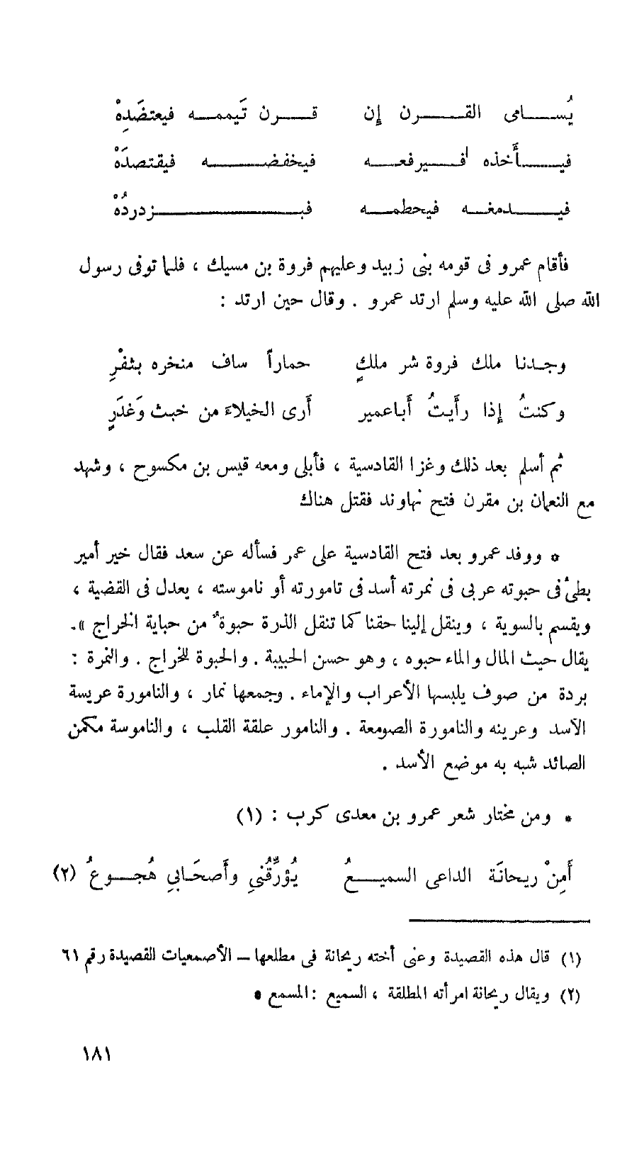 ومن مختار شعر عمرو بن معدى كرب:
