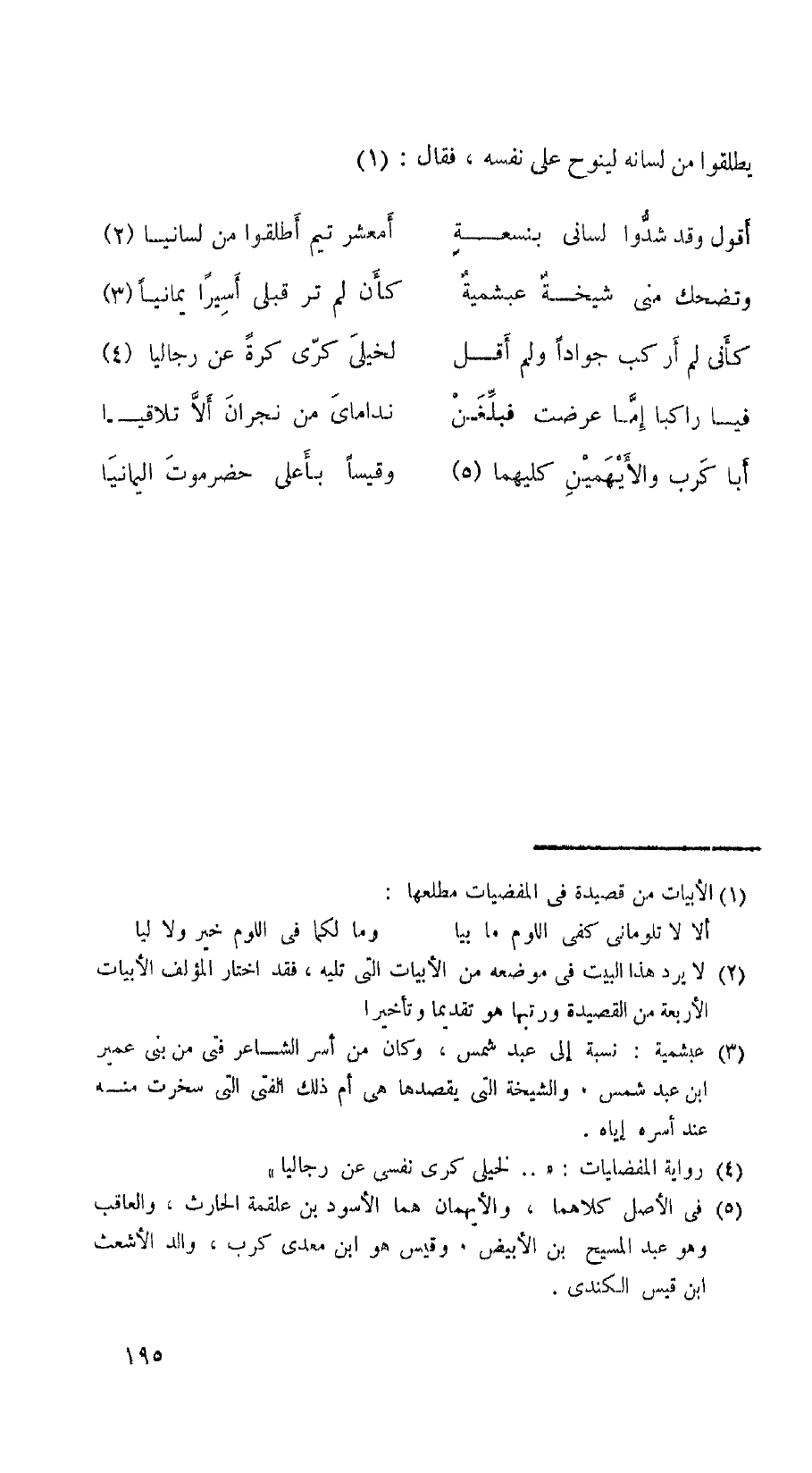 أقول وقد شدوا لساني بنسعة ... أمعشر تيم أطلقوا من لسانيا