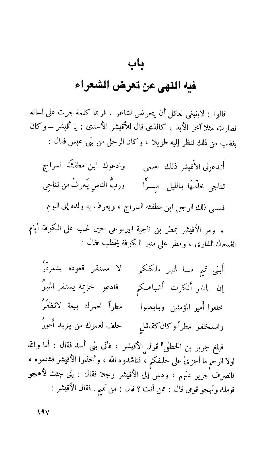 باب فيه النهي عن تعرض الشعراء