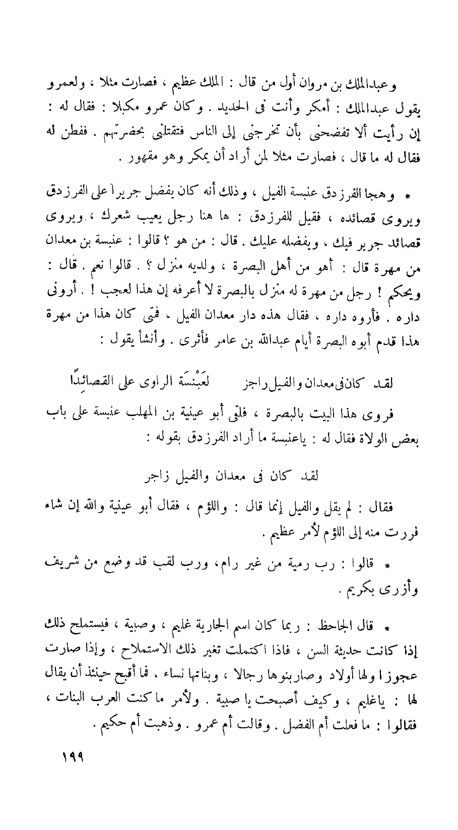 فروى هذا البيت بالبصرة، فلقى أبو عيينة بن المهلب عنبسة على باب بعض الولادة فقال له: يا عنبسة ما أراد الفرزدق بقوله: