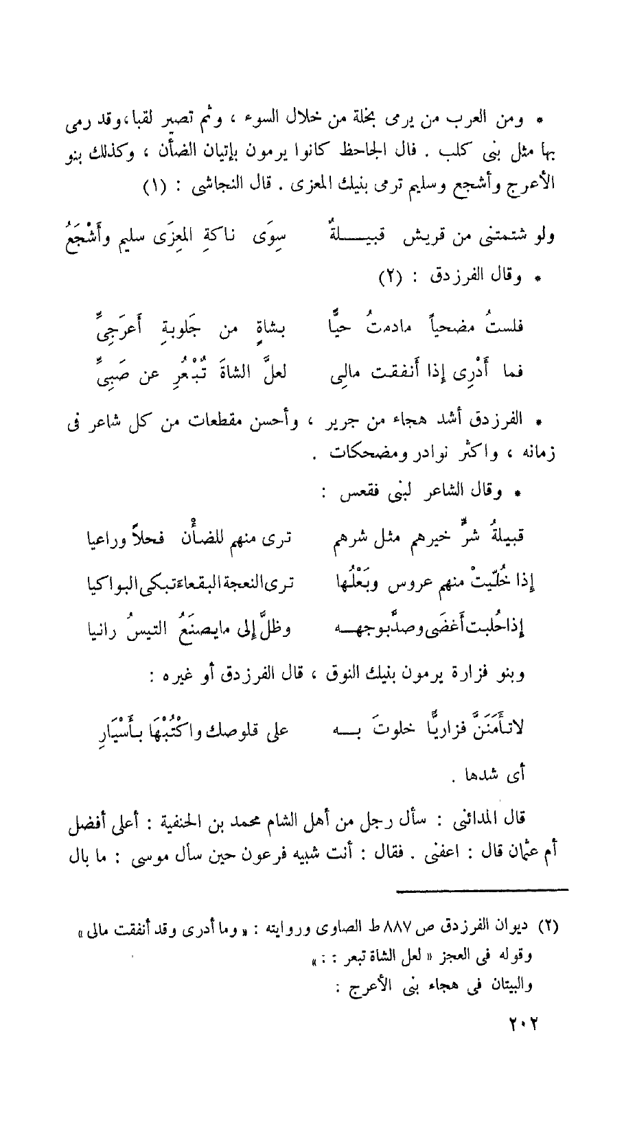 وبنو فزارة يرمون بنيك النوق، قال الفرزدق أو غيره: