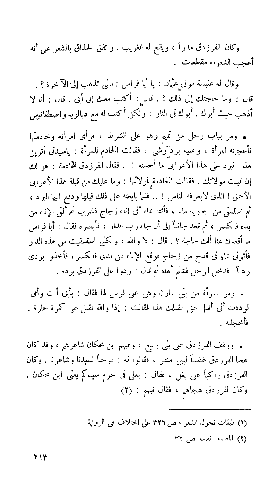 وكان الفرزدق مدراً، ويقع له الغريب. واتفق الحذاق بالشعر على أنه أعجب الشعراء مقطعات.