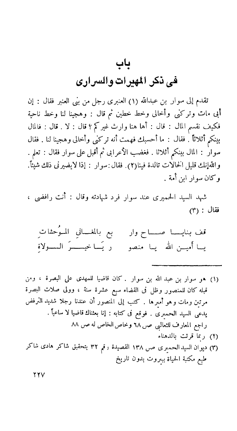 شهد السيد الحميري عند سوار فرد شهادته وقال: أنت رافضي، فقال: