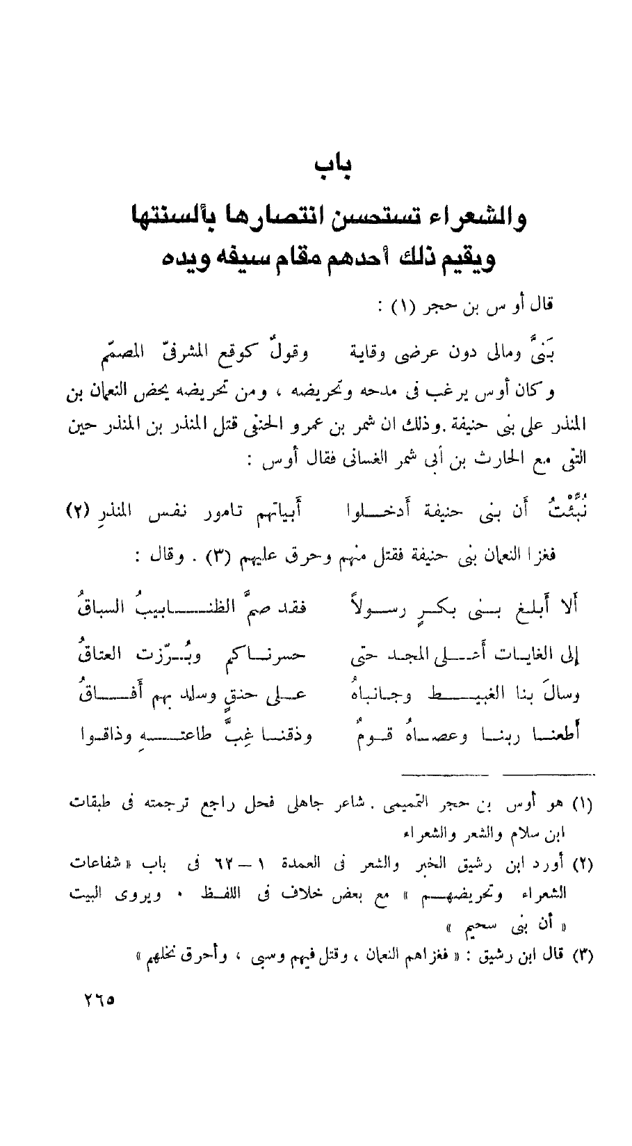 باب والشعراء تستحسن انتصارها بألسنتها ويقيم ذلك أحدهم مقام سيفه ويده