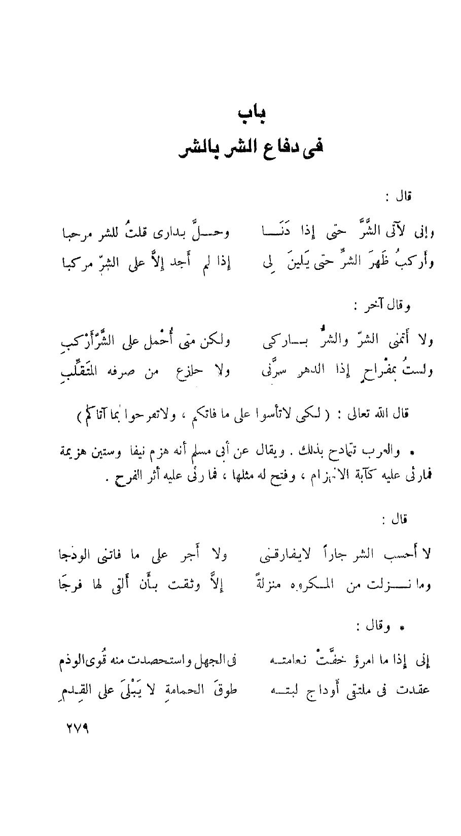والعرب تتمادح بذلك. ويقال عن أبي مسلم أنه هزم نفيا وستين هزيمة فمارئي عليه كآبة الانهزام، وفتح له مثلها، فما رئي عليه أثر الفرح.