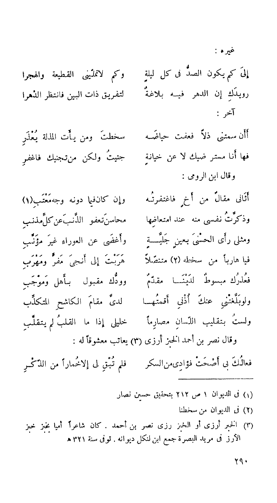 وقال نصر بن أحمد الخبرأرزي يعاتب معشوقاً له: