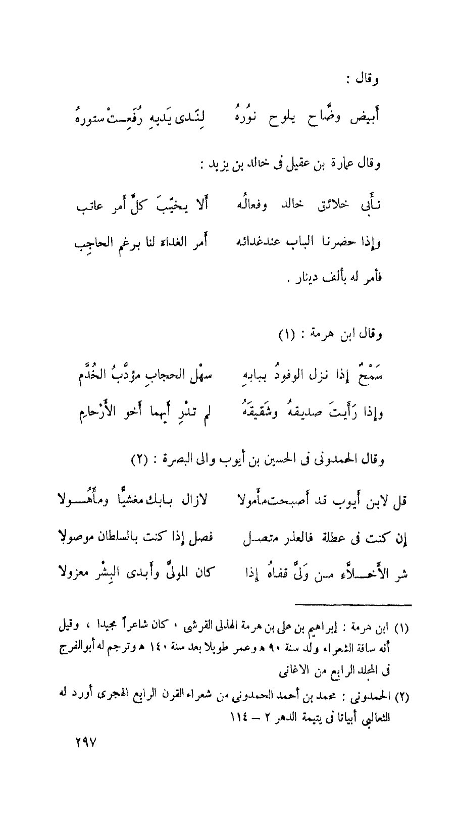 وقال عمارة بن عقيل في خالد بن يزيد: