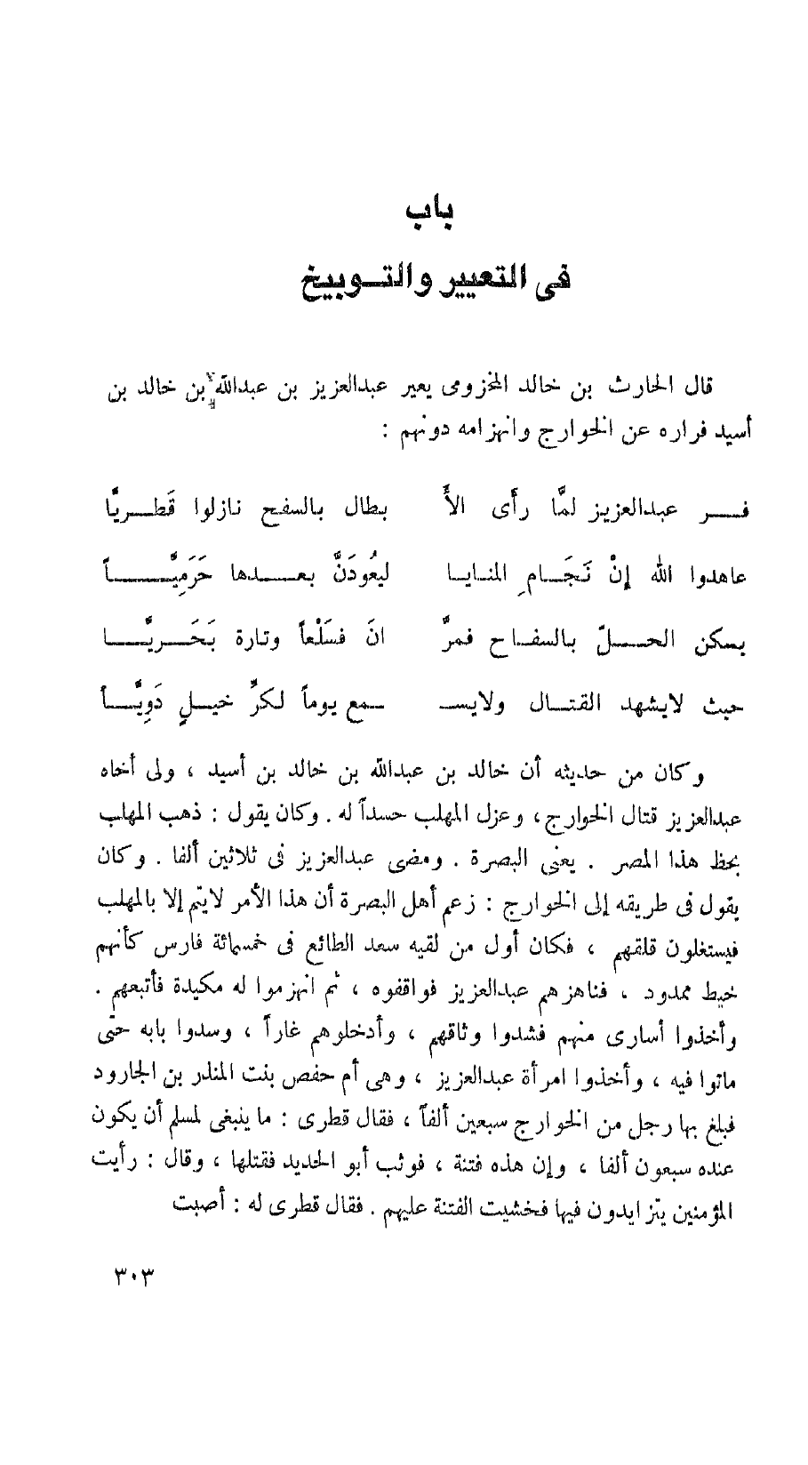 قال الحارث بن خالد المخرومي يعير عبد العزيز بن عبد الله بن خالد أسيد فراره عن الخوارج وانهزامه دونهم: