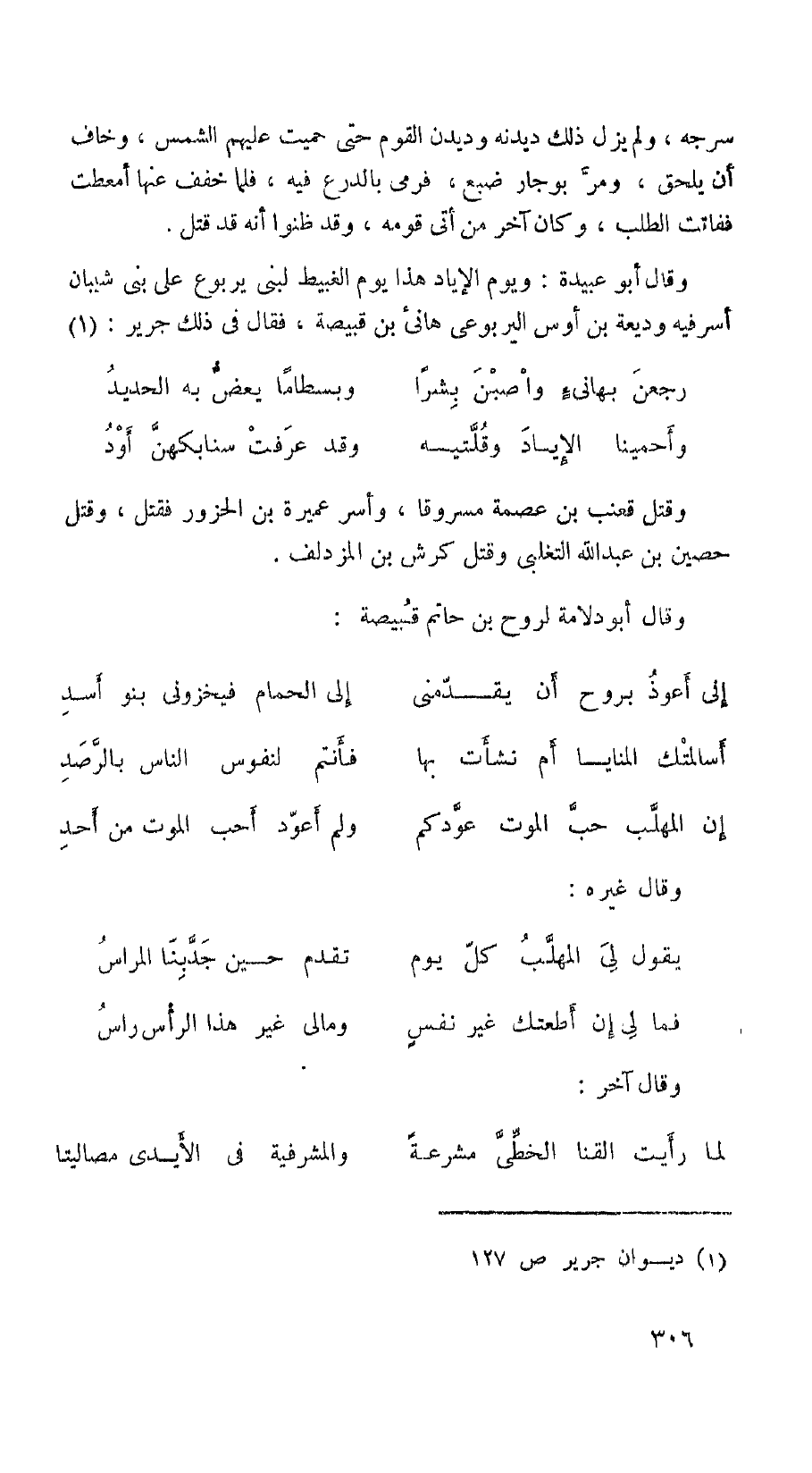 وقال أبو عبيدة: ويوم الإياد هذا يوم الغبيط لبني يربوع على بني شيبان أسر فيه وذيعة بن أوس اليربوعي هانئ بن قبيصة، فقال في ذلك جرير: