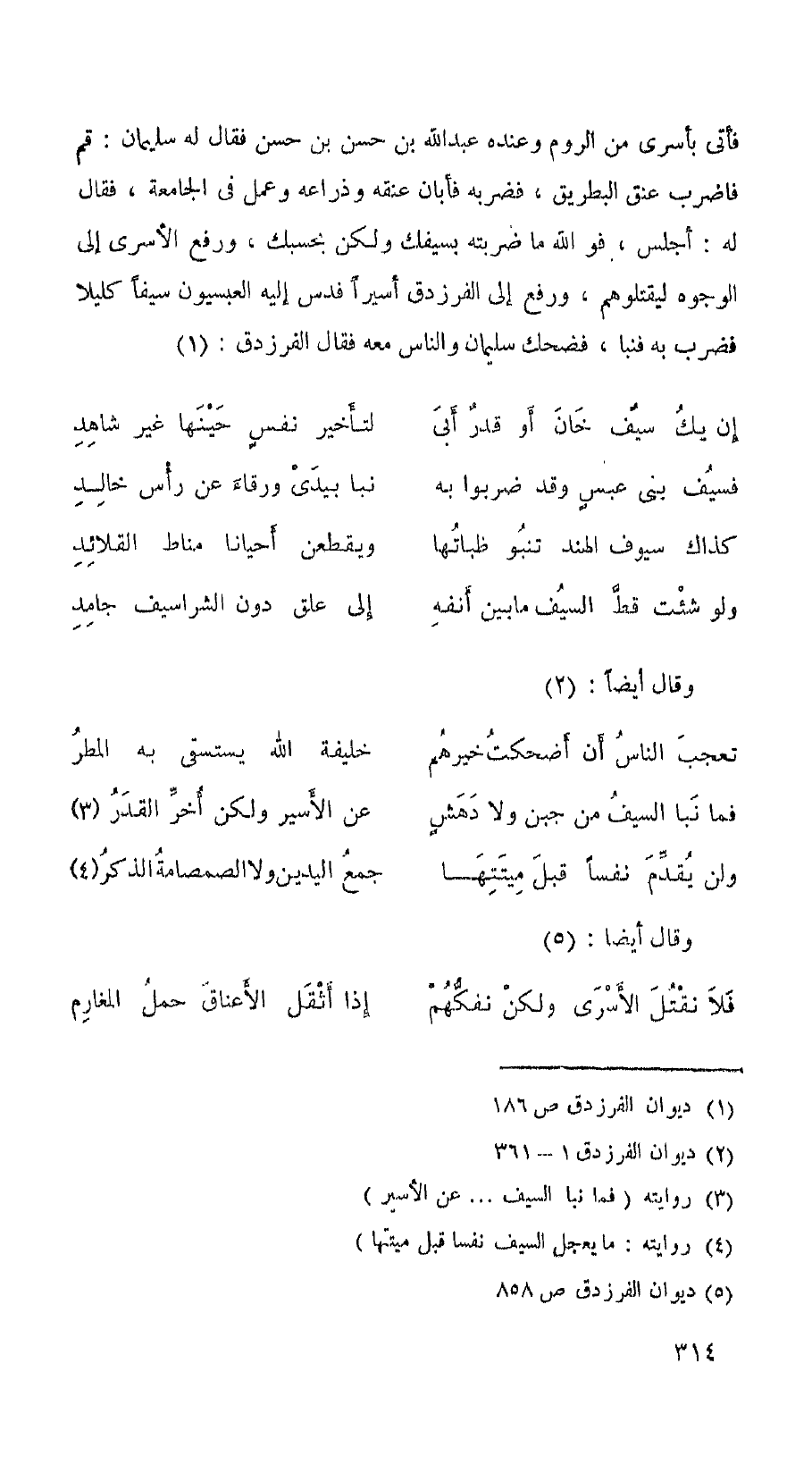 بحسبك، ورفع الأسرى إلى الوجوه ليقتلوهم، ورفع إلى الفرزدق أسيراً فدس العبسيون سيفاً كليلا فضرب به فنبا، فضحك سليمان والناس معه فقال الفرزدق: