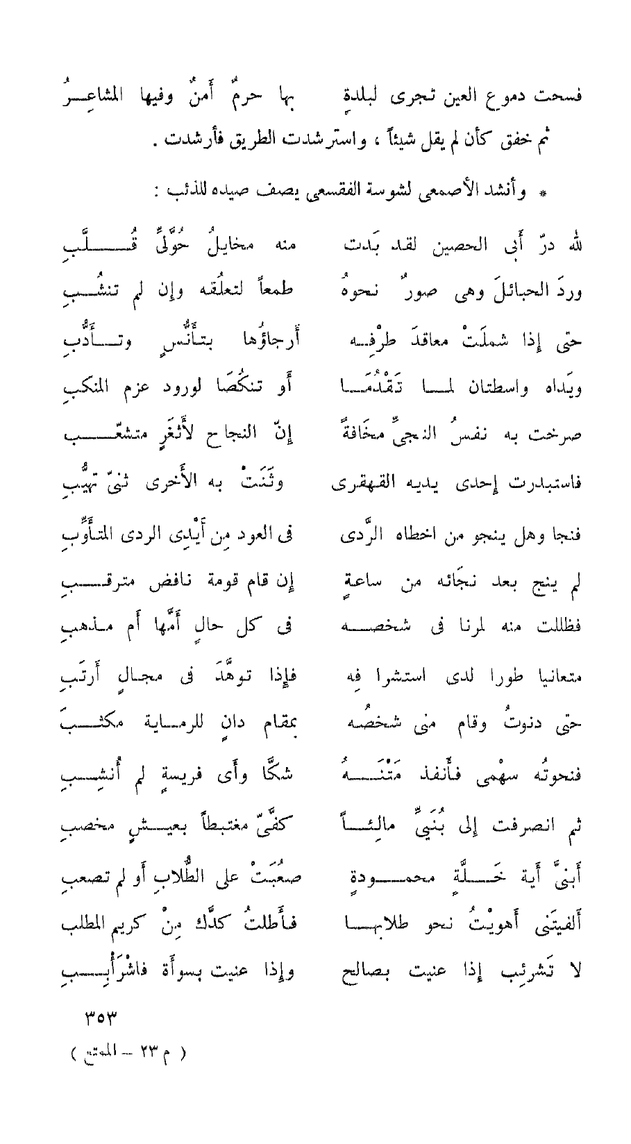 وأنشد الأصمعي لشوسة الفقسعي يصف صيده للذئب: