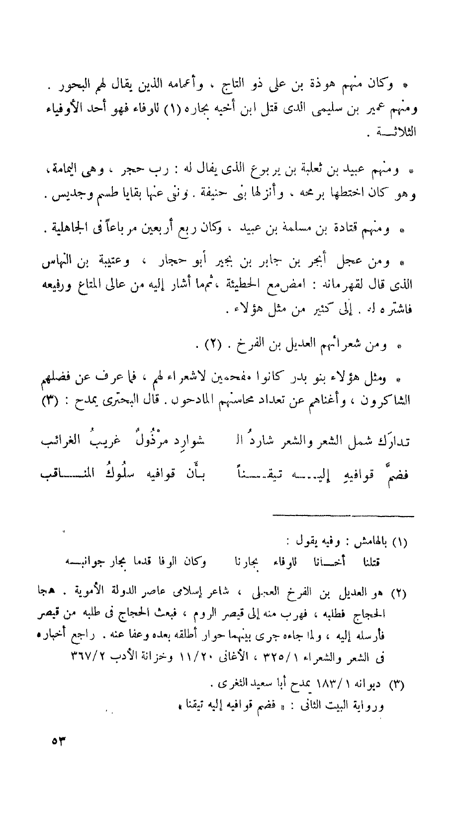 ومن عجل أبجر بن جابر بن بجير أبو حجار، وعتيبة بن النهاس الذي قال لقهرمانه: امض مع الخطيئة، ثم ما أشار إليه من عالي المتاع ورفيعة فاشتره له. إلى كثير من مثل هؤلاء.
