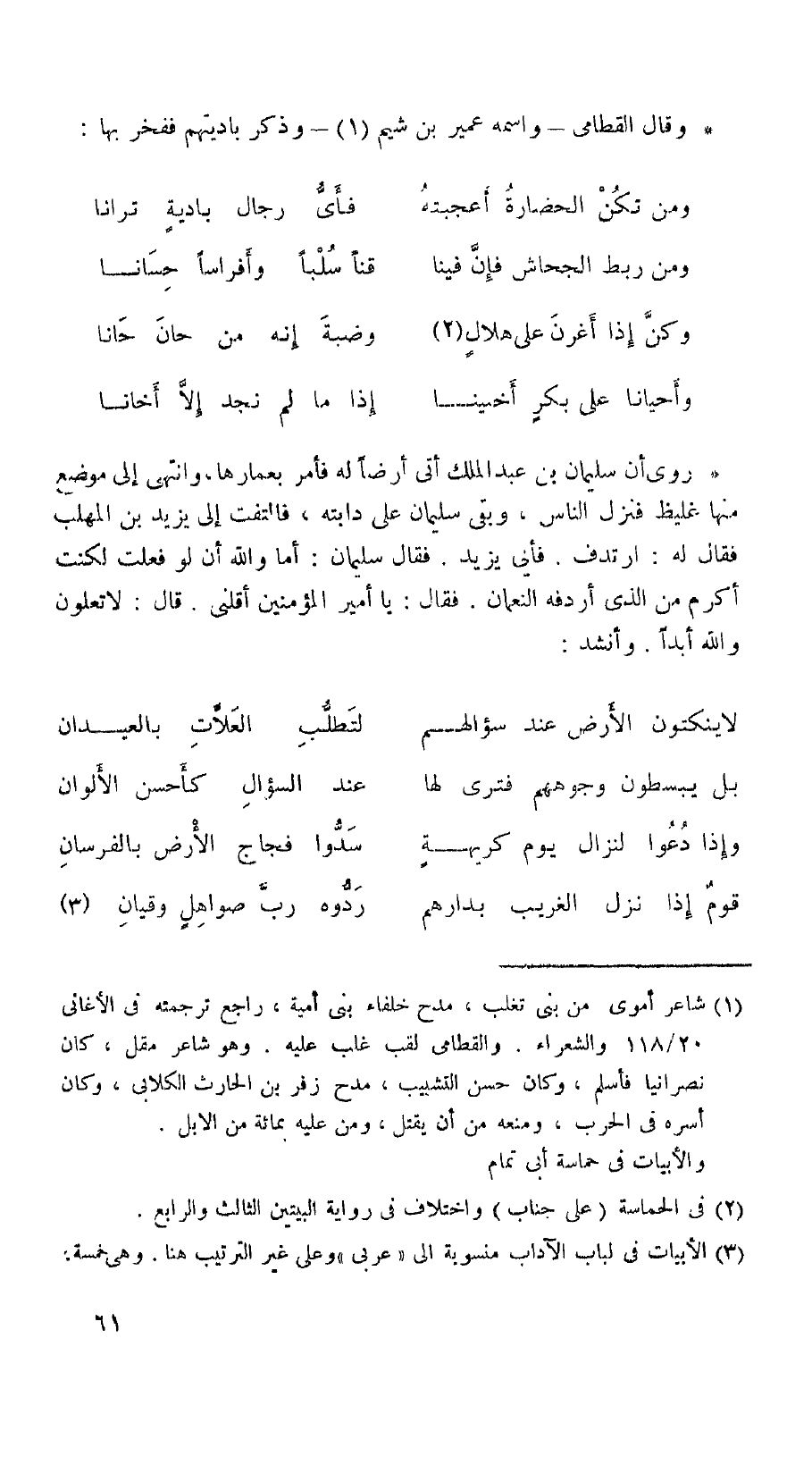 وقال القطامي - واسمه عمير بن شيم - وذكر باديتهم ففخر بها: