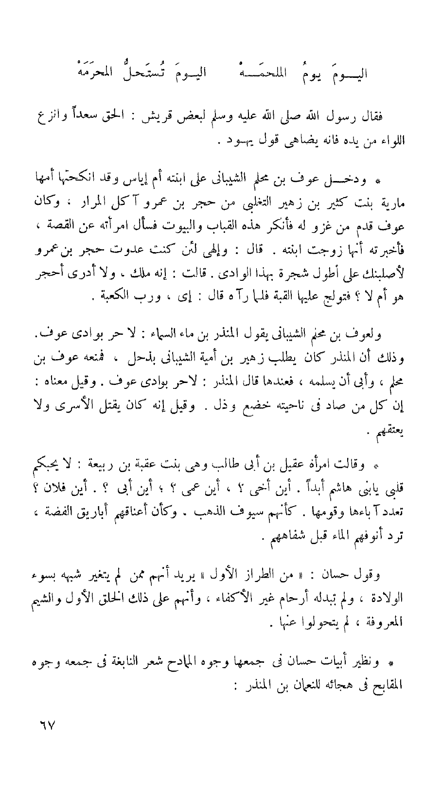 ولعوف بن محلم الشيباني يقول المنذر بن ماء السماء: لا حر بوادي عوف. وذلك أن المنذر كان يطلب زهير بن أمية الشيباني بذحل، فمنعه عوف بن محلم، وأبى أن يسلمه، فعندها قال المنذر: لا حر بوادي عوف. وقيل معناه: إن كل من صاد في ناحيته خضع وذل. وقيل إنه كان يقتل الأسرى ولا يعتقهم.