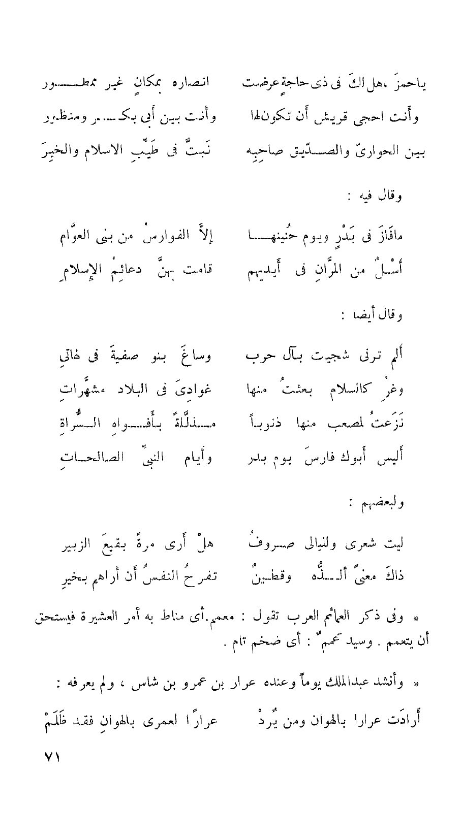 وأنشد عبد الملك يوماً وعنده عرار بن عمرو بن شاس، ولم يعرفه: