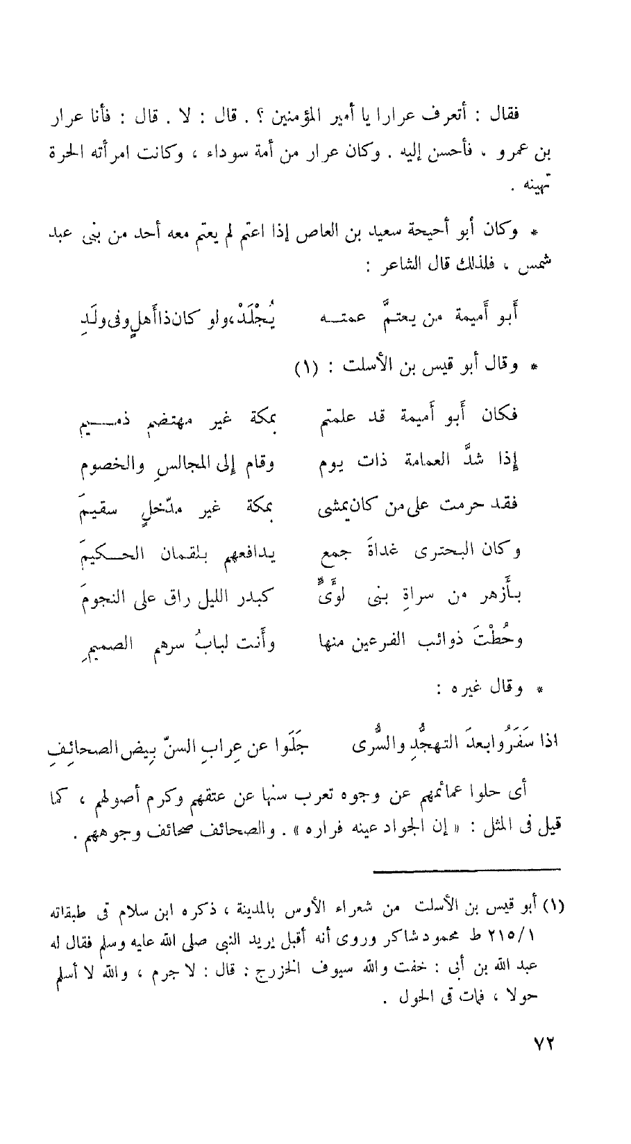 وكان أبو أحيحة سعيد بن العاص إذا اعتم لم يعتم معه أحد من بني عبد شمس، فلذلك قال الشاعر: