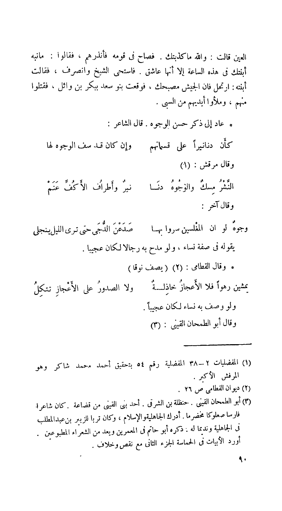 عاد إلى ذكر حسن الوجوه. قال الشاعر: