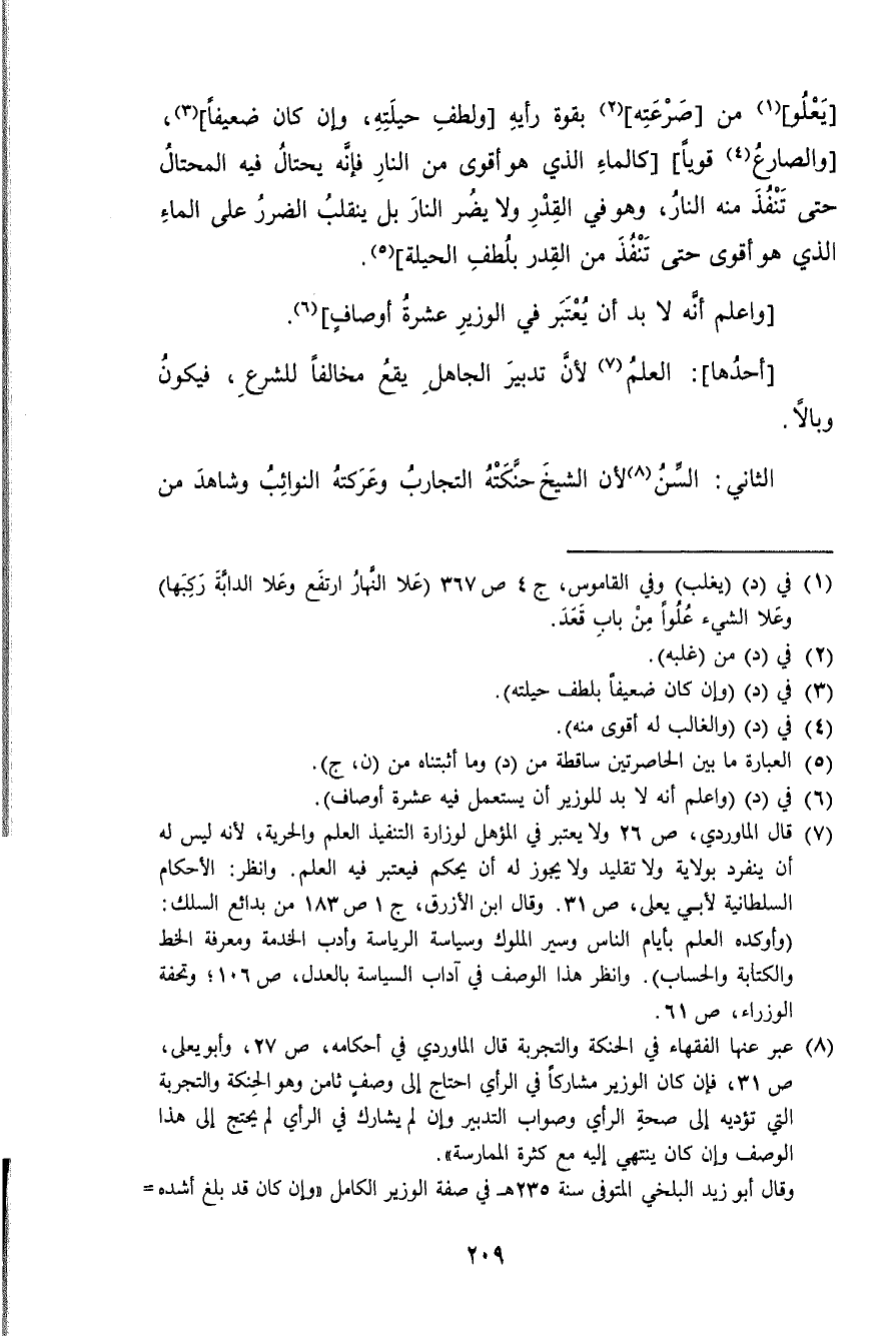 وَاعْلَم أَنه لَا بُد أَن يعْتَبر فِي الْوَزير عشرَة أَوْصَاف