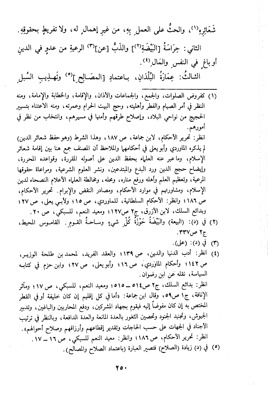 الثَّانِي حراسة الْبَيْضَة والذب عَن الرّعية من عَدو فِي الدّين أَو بَاغ فِي النَّفس وَالْمَال
