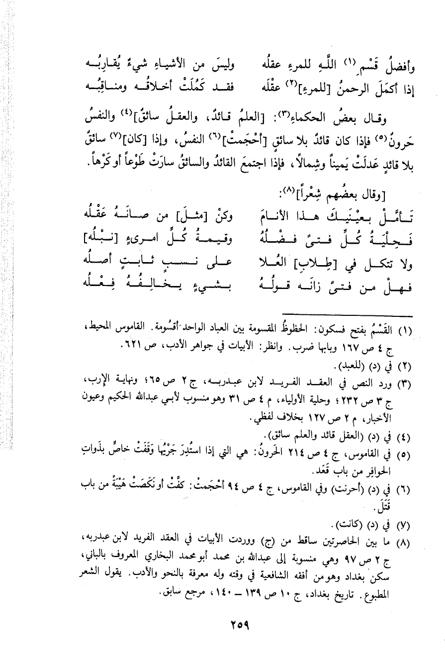 (تَأمل بِعَيْنَيْك هَذَا الْأَنَام ... وَكن مثل من صانه عقله)