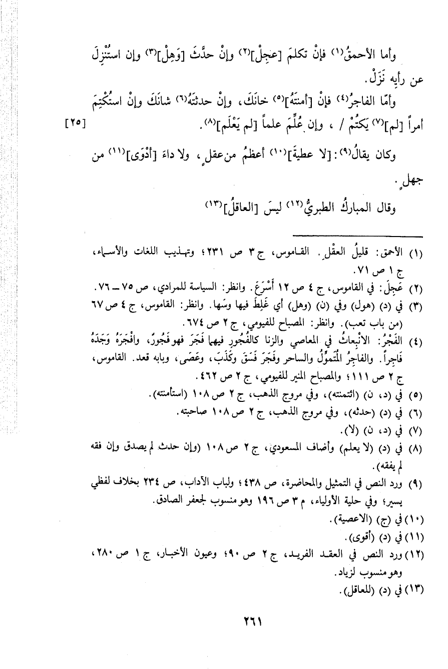 وَكَانَ يُقَال لَا عَطِيَّة أعظم من عقل وَلَا دَاء أدوى من جهل